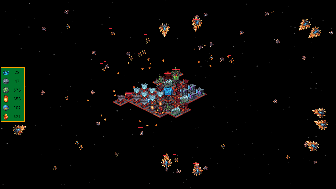 A survival game where you build up a base, upgrade structures, jump to hostile galaxies, fend off waves of enemies and loop back stronger. It's a Prototype - core loop works, but expect rough edges